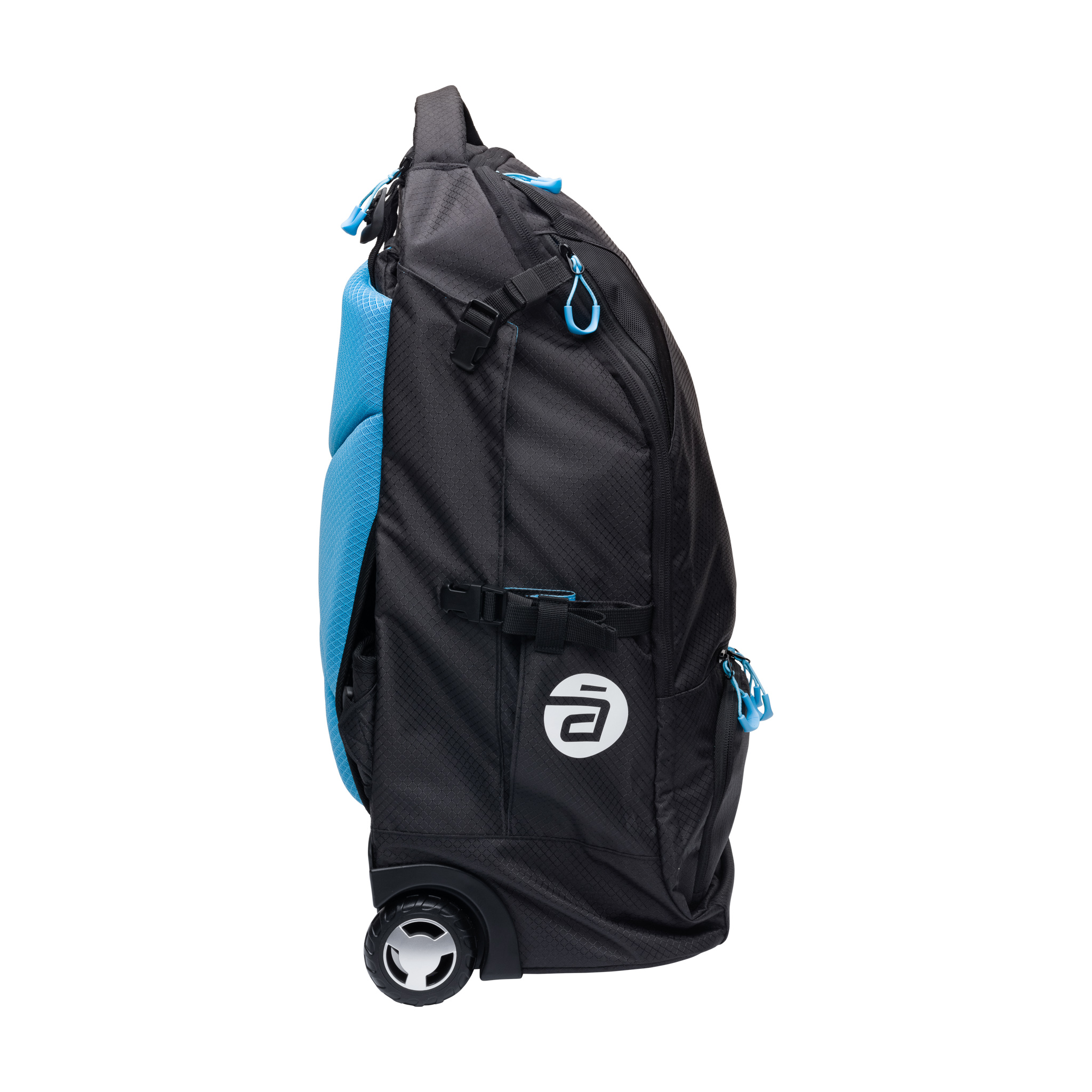 De tas is dankzij de versterkte onderkant erg robuust en schrikt dankzij het waterdichte materiaal niet van een flinke regenbui. En heb je haast op de luchthaven, of ga je even op de fiets naar de training? Dan kun je de tas in beide gevallen eenvoudig op je rug dragen. De draagriemen zijn weggewerkt in de tas, maar kunnen eenvoudig tevoorschijn worden gehaald, zodat je makkelijk kan schakelen van trolley naar rugzak. De eerder genoemde pads geven je hiervoor voldoende comfort.